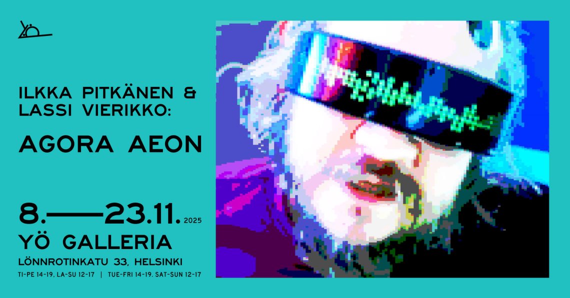 Näyttelykokonaisuus Agora Aeon tarkastelee teknologian ja ihmismielen rajapintaa maailmassa, jossa valvonta on muuttunut kaiken kattavaksi tietoisuuden tilaksi – mielen panoptikoniksi. Näyttely koostuu kahdesta teoksesta: Yö Gallerian suuren näyttelytilan täyttävästä Ilkka Pitkäsen ja Lassi Vierikon Agora Aeon -videoinstallaatiosta sekä gallerian takatilaan sijoittuvasta Ilkka Pitkäsen osallistavasta teoksesta UP'L. Näyttelyteosten äänisuunnittelusta vastaa Markus Bonsdorff ja ohjelmoinnista Timo Pitkänen.