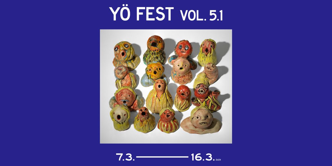 Yö ry art community's annual multi-arts festival, enriches and enlivens the capital's cultural offerings. Yö Fest vol. 5 contains a wide range of works from different art fields and authors. The works of Yö ry member artists have been curated into four group exhibitions with specific themes. The fifth part, focusing on the performing arts, culminates the festival in May. Come and experience art!