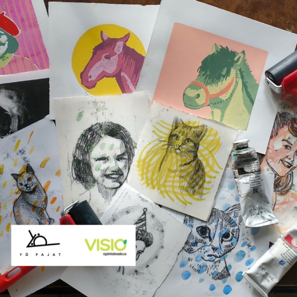 18.11.2023 - 26.11.2023Kurssilla tehdään grafiikkaa tekniikoilla, joita pystyy helposti käyttämään myös kotona. Kokeillaan mustavalkoisen monotypian tekemistä ja kohopainantaa monivärisenä. Kurssilla esitellään kaksi erilaista grafiikan tekniikkaa ja opitaan ne niin, että halutessaan voi jatkaa tekemistä kotonakin. Etukäteen ei tarvitse osata mitään grafiikan tekemisestä.
